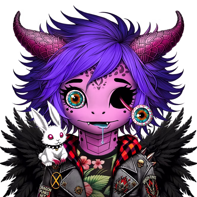 A. Dragon Punks NFT is an original concept and idea created by its founders. The art style is a unique digital mixed medium design crafted by artist and founder @ThePrimalDark. The NFTs have been designed to foster a community of freedom loving, authentic, bold, and adventurous individuals.
